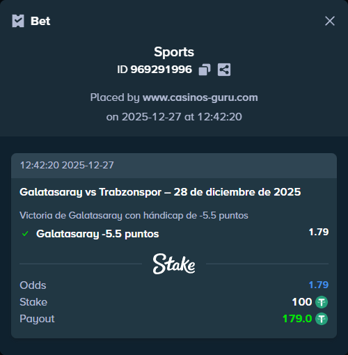 Victoria de Galatasaray con un hándicap de -5.5 puntos a una cuota de 1.79.