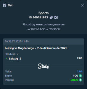 - ¿Qué significa el hándicap -2? Significa que Leipzig debe ganar por al menos 3 goles para que la apuesta sea ganadora.