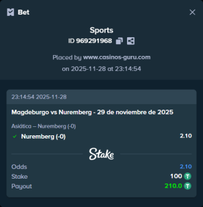 Desde nuestra perspectiva, la mejor apuesta sería la asiática – Nuremberg (-0) a cuota 2.10, respaldada por su racha actual y la debilidad del Magdeburgo.