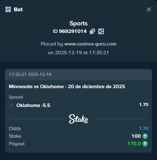 Esta apuesta se basa en la sólida forma en la que se presenta Oklahoma, que ha demostrado ser un equipo robusto tanto en defensa como en la ofensiva, junto a su historial positivo enfrentando a Minnesota. Mientras tanto, la falta de jugadores clave en el equipo local puede comprometer su rendimiento.