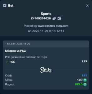 - ¿Cuáles son las cuotas actuales para la apuesta recomendada? La cuota para PSG ganando con un hándicap de -1 es de 1.93, lo cual es bastante atractivo.