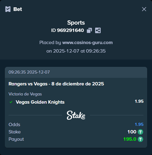 Pronóstico para el partido Rangers vs Vegas del 8 de diciembre de 2025