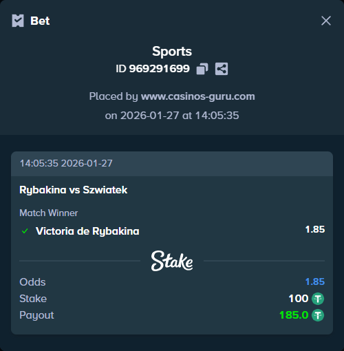 - 20.01.26: Rybakina 2 – 0 Juvan