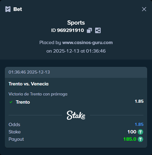 El equipo Trento busca una victoria crucial contra Venecia. Apuesta recomendada: victoria de Trento en caso de prórroga.