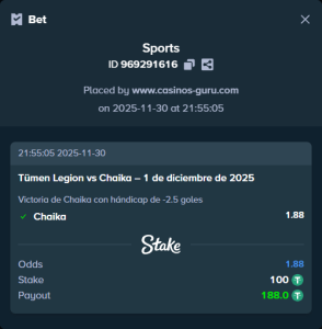 Para este partido, la mejor apuesta es la victoria de Chaika con un hándicap de -2.5 goles al precio de 1.88. Dada su forma y el récord contra el Tümen Legion, parece una opción muy lógica.