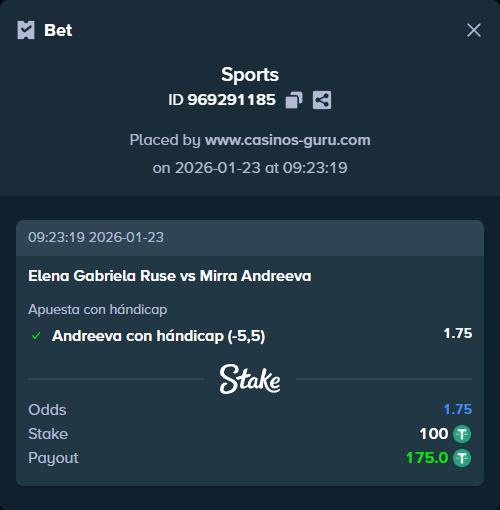 Total de juegos más de 18,5 a cuota 1.80. Con el estilo de juego de Ruse, es probable que veamos un partido reñido, aunque Andreeva debería prevalecer.