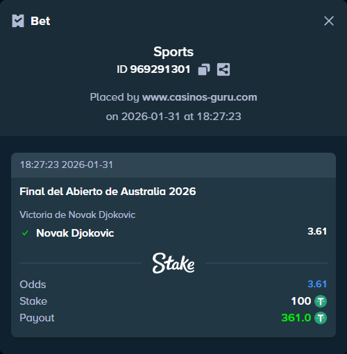 - ¿Qué cuota tiene la victoria de Djokovic? Aproximadamente 3,61 en las principales casas de apuestas, con opciones en línea en diferentes plataformas.
