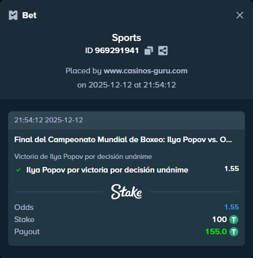 Con base en los análisis de desempeño y las estadísticas recientes de ambos boxeadores, la apuesta más lógica y segura se centra en la victoria de Ilya Popov por decisión unánime, con un coeficiente de 1.55.