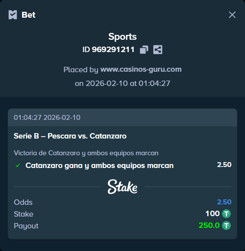 Catanzaro gana y ambos equipos marcan. Esta apuesta combina la victoria del favorito con la posibilidad de que Pescara logre anotar. Si Catanzaro domina el partido pero Pescara aprovecha alguna oportunidad o un error defensivo, esta cuota alta podría ser muy rentable.