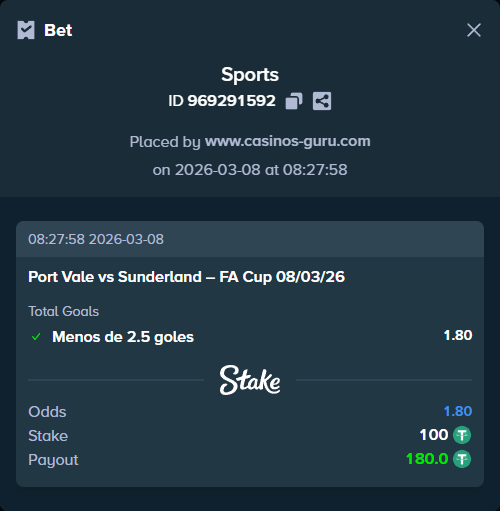 En uno de los partidos de octavos de final de la Copa FA el 8 de marzo, Port Vale se enfrenta a Sunderland. El modesto representante de la Primera Liga ha alcanzado un nivel sorprendente, ¿podrá dar la sorpresa hoy? A continuación, se presenta un análisis detallado que te ayudará a elegir apuestas confiables.