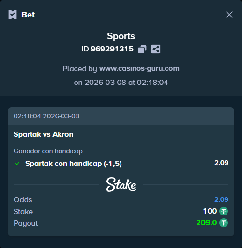 - Apuesta principal: Spartak gana con handicap (-1,5) a cuota 2.09
