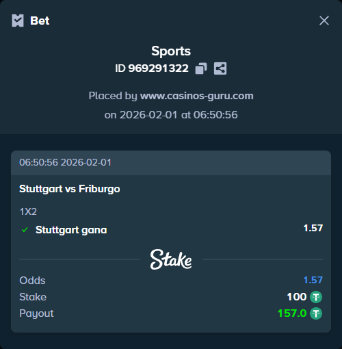 - Apuesta de riesgo: Stuttgart gana con un marcador de 3-1.