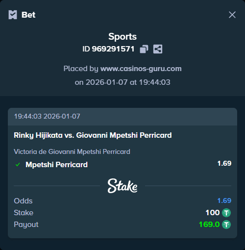 Las cuotas actuales favorecen ligeramente a Mpetshi Perricard, con una cuota de alrededor de 1.69, mientras que la victoria de Hijikata se paga a 2.16. El total de juegos se sitúa en torno a 25.5, con cuotas similares para el over y el under.