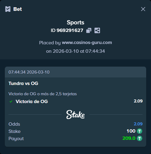 - Apuesta principal: Victoria de OG o más de 2,5 tarjetas con una cuota de 2,09. OG tiene más posibilidades de ganar dado el bajo rendimiento de Tundra en sus últimos partidos.