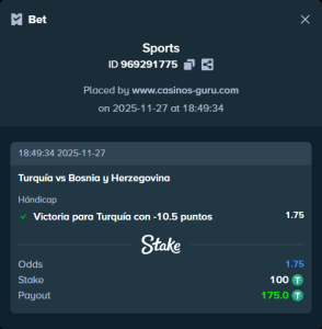 Pronóstico: Turquía vs Bosnia y Herzegovina – Victoria para Turquía con -10.5 puntos el 27 de noviembre de 2025
