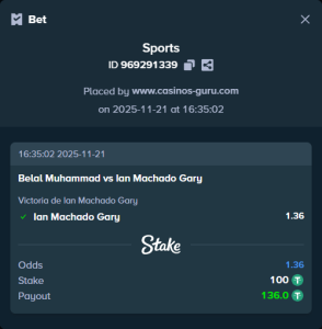 Victoria de Ian Machado Gary, apuesta recomendada con cuota de 1.36