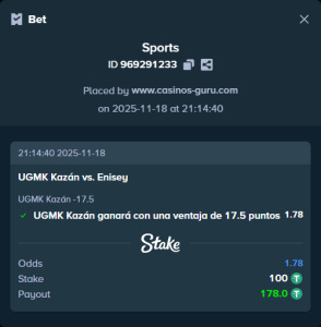 - Apuesta Principal: UGMK Kazán -17.5 (1.78)