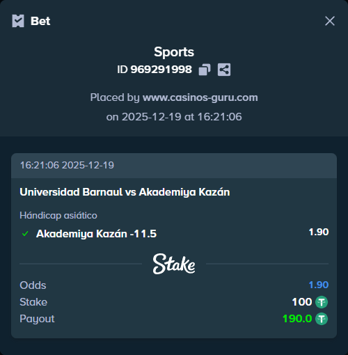 - Apuesta principal: Hándicap asiático (-11.5) para “Akademiya” Kazán a cuota 1.90.