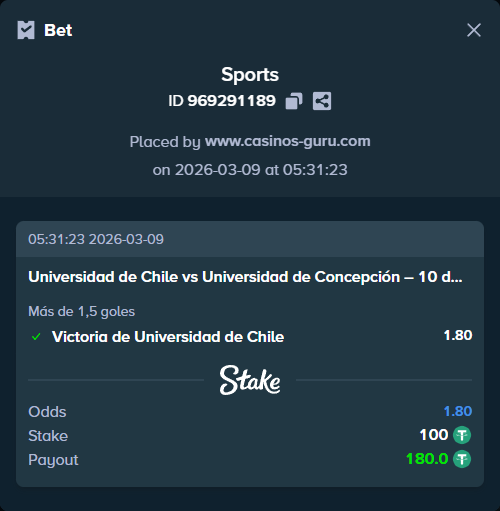 | Universidad de Chile | 01/03/26 | Colo-Colo | 1:0 | 1.8 | 7 | 55% | Ninguna |