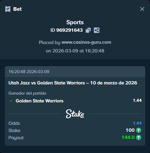 - Apuesta principal: Golden State Warriors ganan (cuota 1.44).