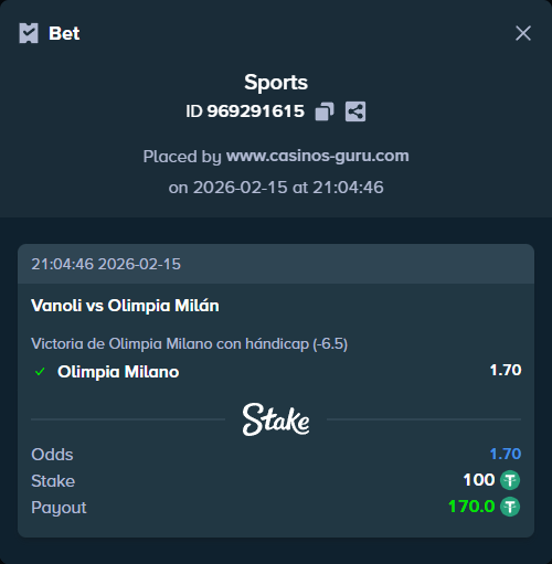 - Apuesta principal: Olimpia Milano gana con hándicap (-6.5) a cuota 1.70.