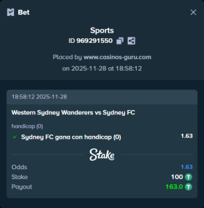 - Apuesta recomendada: Sydney FC gana con hándicap (0) a 1.63.