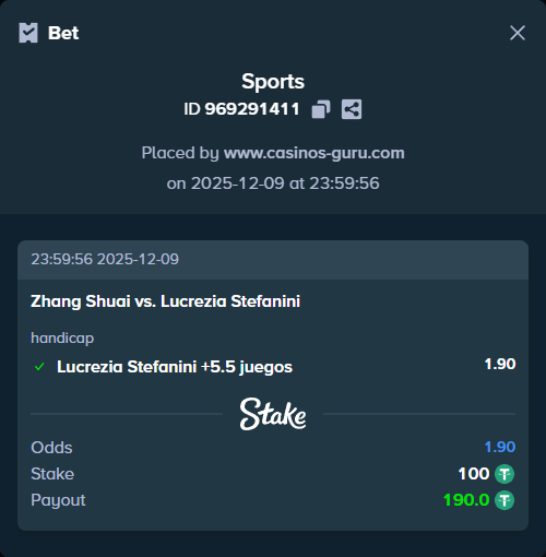 La apuesta recomendada sería una victoria de Lucrezia Stefanini con un **handicap de +5.5 juegos** a una cuota de 1.90. Esto se basa en la premisa de que, aunque Zhang debería ganar, es poco probable que lo haga de forma contundente, dadas las circunstancias actuales.
