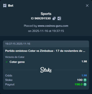 Nuestra recomendación de apuesta es una victoria de Catar con una cuota de 1.98. Este es un valor atractivo para apostadores que buscan aumentar su capital con una apuesta razonablemente segura.