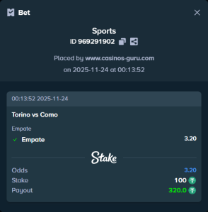 - ¿Cuáles son los mejores coeficientes disponibles? Torino (3.50), Empate (3.20) y Como (2.30).